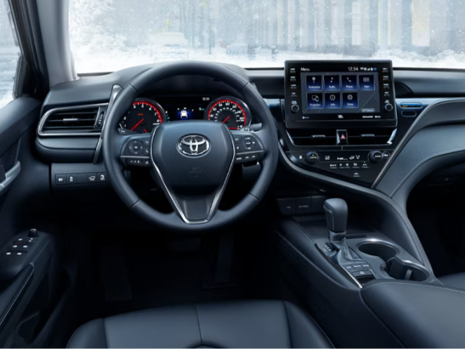 The 2024 Toyota Camry combines a more spacious interior with top-notch technology. An available 10-inch Head-Up display keeps your eyes on the road while projecting vital information onto the windshield, while all your passengers stay entertained with the available 9-inch touchscreen featuring embedded navigation, Apple CarPlay and Android Auto, and intuitive controls. The driver-focused design prioritizes ease of use with perfectly placed steering wheel controls and a wide-upen dash. Higher trims offer unique features like heated and ventilated seats, a Cold Weather Package, and a variety of stylish interior accents.