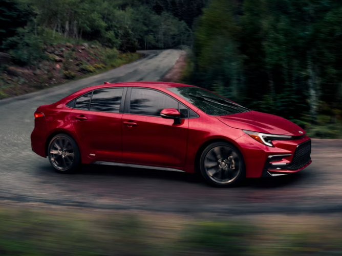 The 2024 Toyota Corolla has a more streamlined trim offering which includes three gas-powered trims, three hybrid trims, and the Nightshade Edition appearance package which can be optioned on all trims. The entry-level LE offers an 8-inch infotainment system, Wi-Fi connectivity, and automatic climate control, as well as a few other standard features. The Hybrid LE is equipped the same, but features the hybrid powertrain. The SE is a bit sportier with 18-inch wheels, distinctive exterior trim elements, steer-wheel mounted paddle shifters, and dual chrome exhaust tips. As you might have guessed the Hybrid SE is the same sporty car but with the Hybrid engine. Available only as a gas-engine, the XSE builds onto the SE features with SofTex upholstery, heated front seats, and a 7-inch gauge display. The XLE comes with the hybrid powertrain and is equipped similar to the XSE trim. The Nightshade Edition appearance package adds bronze 18-inch wheels, a black mesh grille, and other exterior embellishments.
