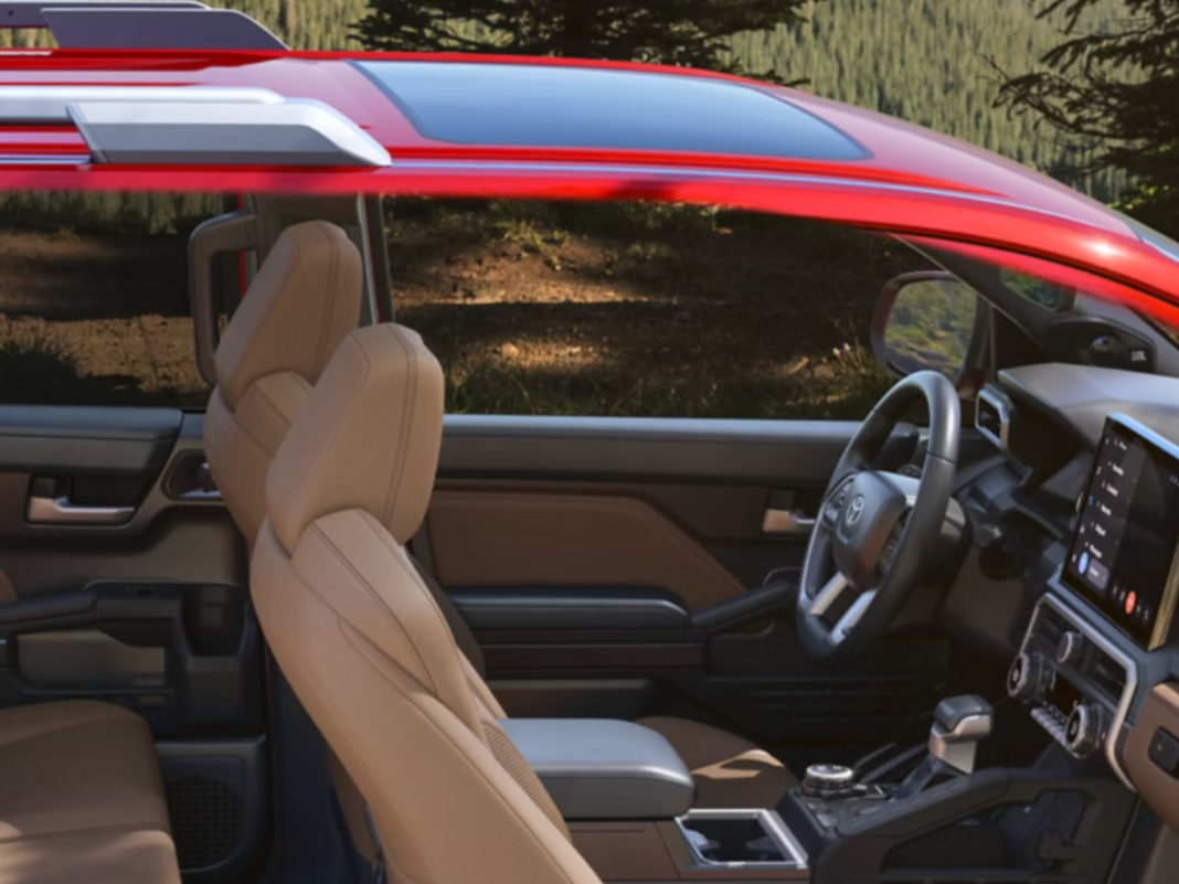 The 2025 Toyota 4Runner carries over the rugged, functional cabin design inspired by the recently redesigned Toyota Tacoma pickup. Large, easy-to-use dials, toggle switches, and a sturdy grab handle for the front passenger emphasize durability and practicality. While overall cabin space remains similar to the previous model, the inclusion of a third row of seating adds versatility for larger families. Cargo space is ample at 47.2 cubic feet with all rows up, and especially plentiful if the rear seats are folded down, hitting a max of 89.5 cubic feet. The 2025 4Runner enhances its technology offerings with a standard 8-inch infotainment touchscreen, while a 14-inch touchscreen is available on higher trims. Both systems support wireless Apple CarPlay and Android Auto, along with multiple USB-C power ports and digital key functionality for added convenience. A new 7-inch digital gauge cluster replaces the traditional setup, with an optional 12.3-inch digital display for a more modern touch. These updates represent a significant step forward, as the outgoing 4Runner was limited to an 8-inch screen.