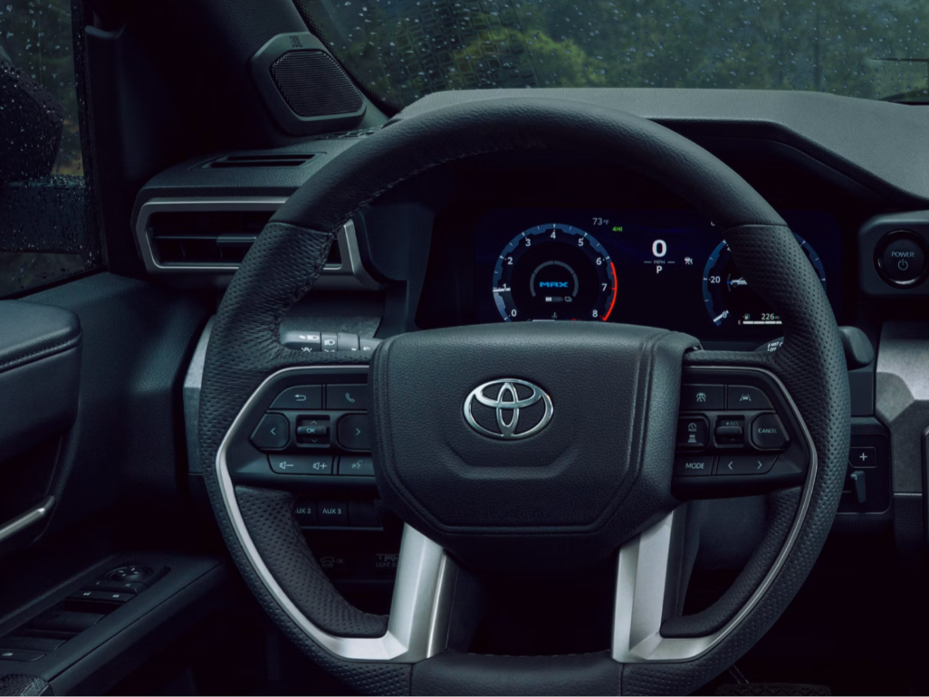 The 2025 Toyota 4Runner, for sale on our lot in Yuba City, comes standard with a turbocharged 2.4-liter four-cylinder engine, known as the i-Force, paired with an eight-speed automatic transmission. This powertrain delivers a robust 278 horsepower and 317 lb-ft of torque, providing plenty of strength for everyday driving and light off-road adventures. For those seeking even more capability, the optional i-Force Max hybrid powertrain adds an electric motor, boosting total output to an impressive 326 horsepower and 465 lb-ft of torque—the most powerful engine ever offered in the 4Runner. Like the base engine, it is paired with an eight-speed automatic transmission for smooth and efficient power delivery. Rear-wheel drive comes standard, but the 4Runner offers both part-time and full-time four-wheel-drive systems, depending on the trim. Advanced off-road features, including limited-slip and fully locking differentials, are also available, making the 4Runner a versatile choice for rugged terrain. Additionally, Toyota's Multi-Terrain Select system has been updated to operate in both 4-High and 4-Low, enhancing the vehicle’s off-road prowess and adaptability to various driving conditions. Depending on the trim you choose, fuel efficiency will range anywhere from 19 mpg to a high of 29 mpg for the hybrid variant.